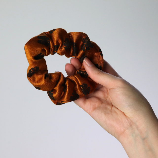 Tu l'auras compris, chaque chouchou est imprimé avec un motif que j’ai préalablement gravé puis cousu à la main par mes soins, rendant chacun d'eux uniques !