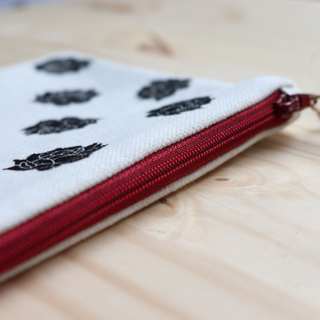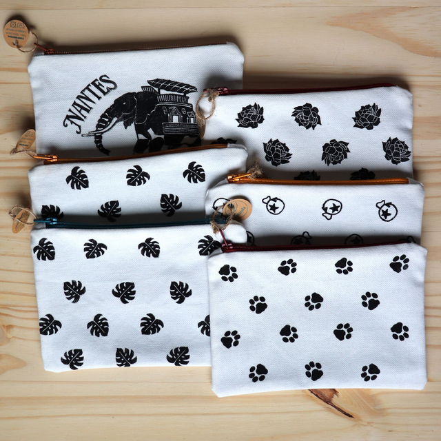 Pochette zippée doublée 17 x 13cm imprimée et cousue main en coton certifié Oeko-Tex