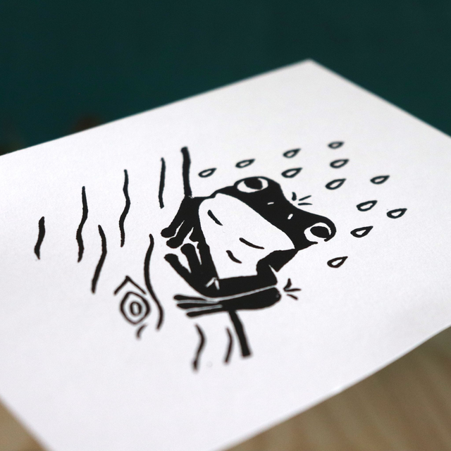 Le format A6 de cette carte Grenouille sous la pluie vous permet de l'intégrer facilement dans votre décoration, dans n'importe quelle pièce de votre cocon. À accrocher telle quelle ou à mettre sous cadre, c’est vous qui voyez ! Amateurs de fait main et amoureux des animaux, pourquoi ne pas accueillir cette linogravure chez vous ? 🖼️